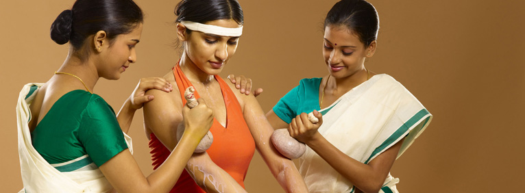 In this ayurvedic treatment process medicated rice (Njavara rice) in the form of boluses tied in muslin bags are applied externally. The boluses are dipped in mixture of milk and a brewed herbal decoction, and then applied all over the body to induce sudation.